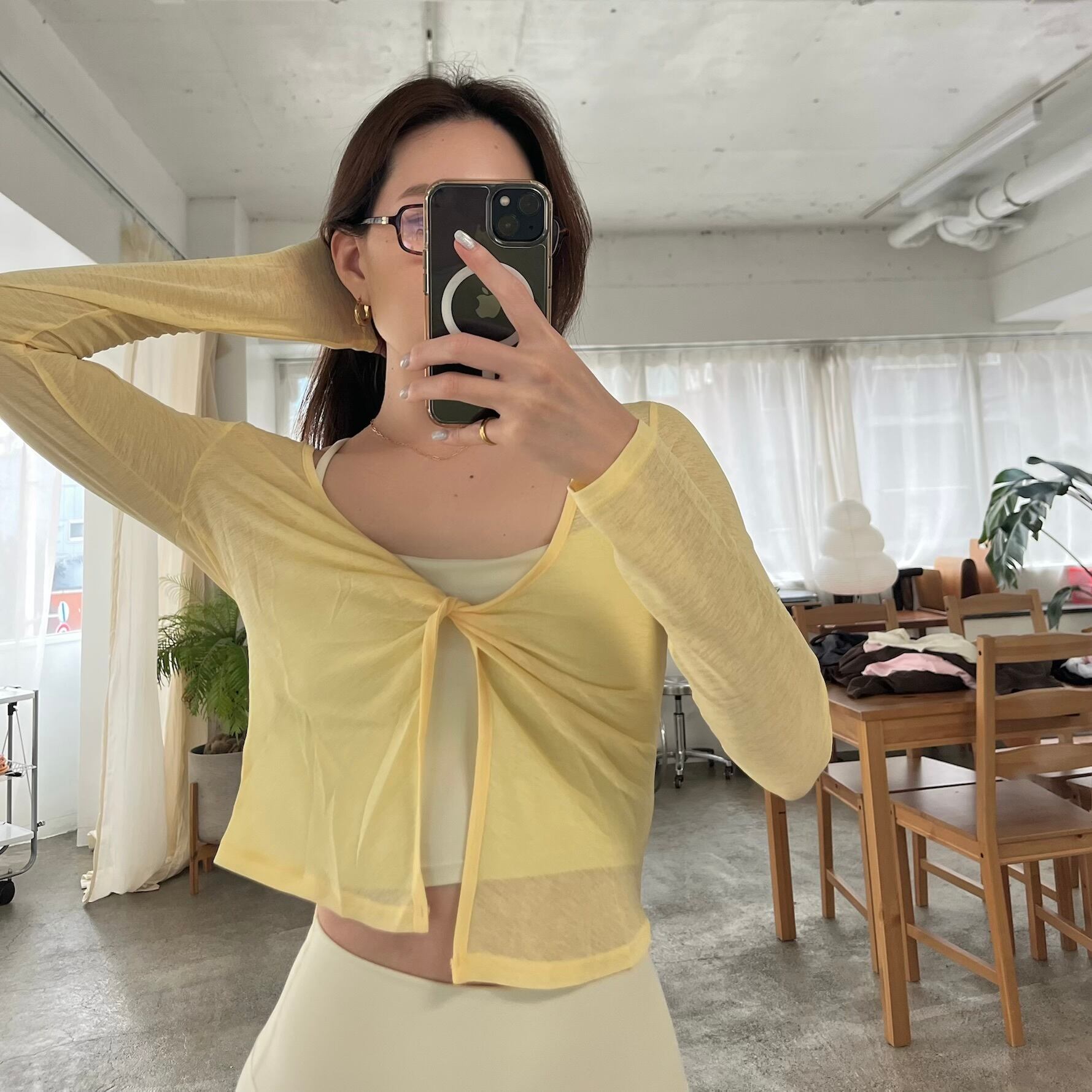 ふんわり透け感がヘルシーな印象を与えるシアートップス。