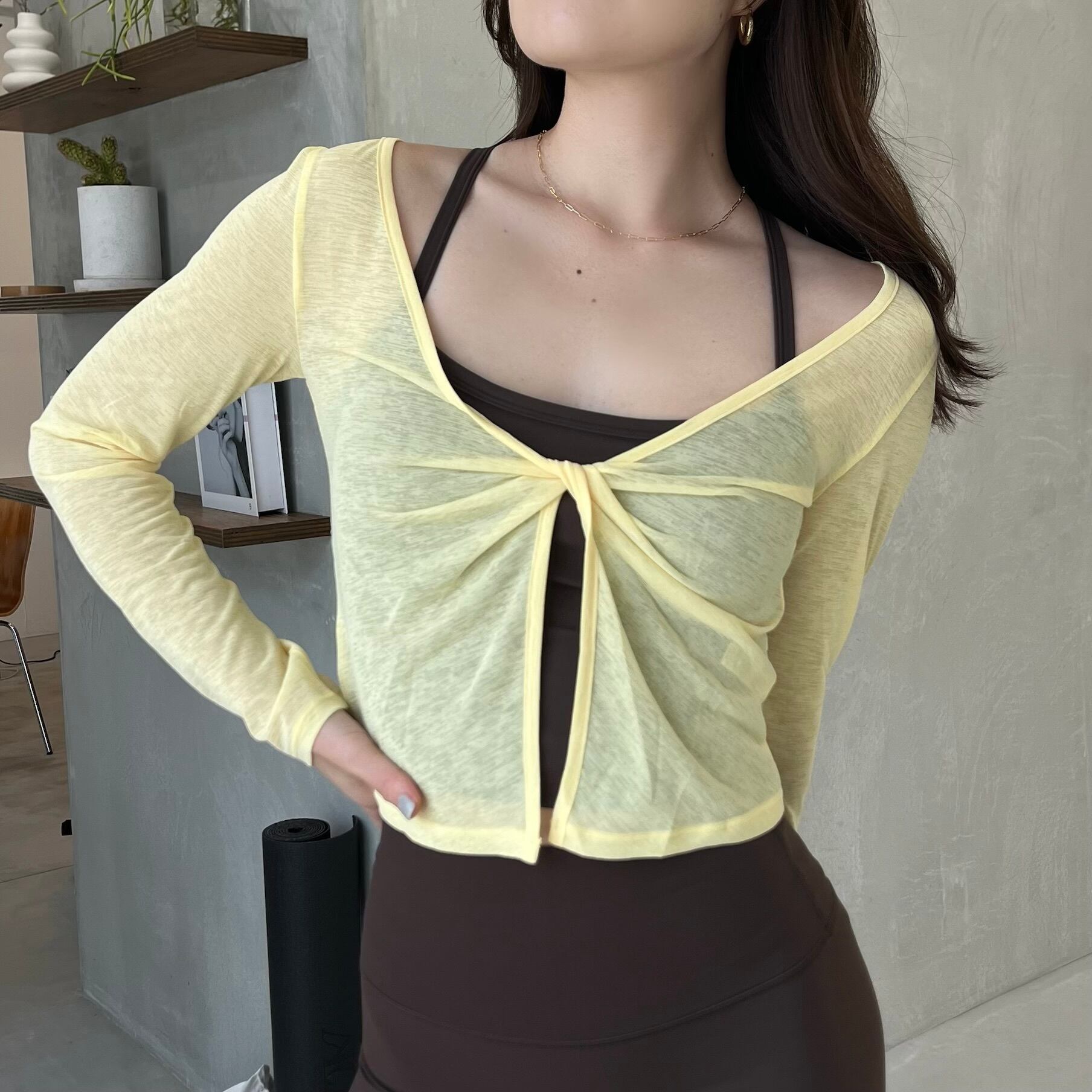 -インナーとのレイヤードを楽しめる絶妙な透け感