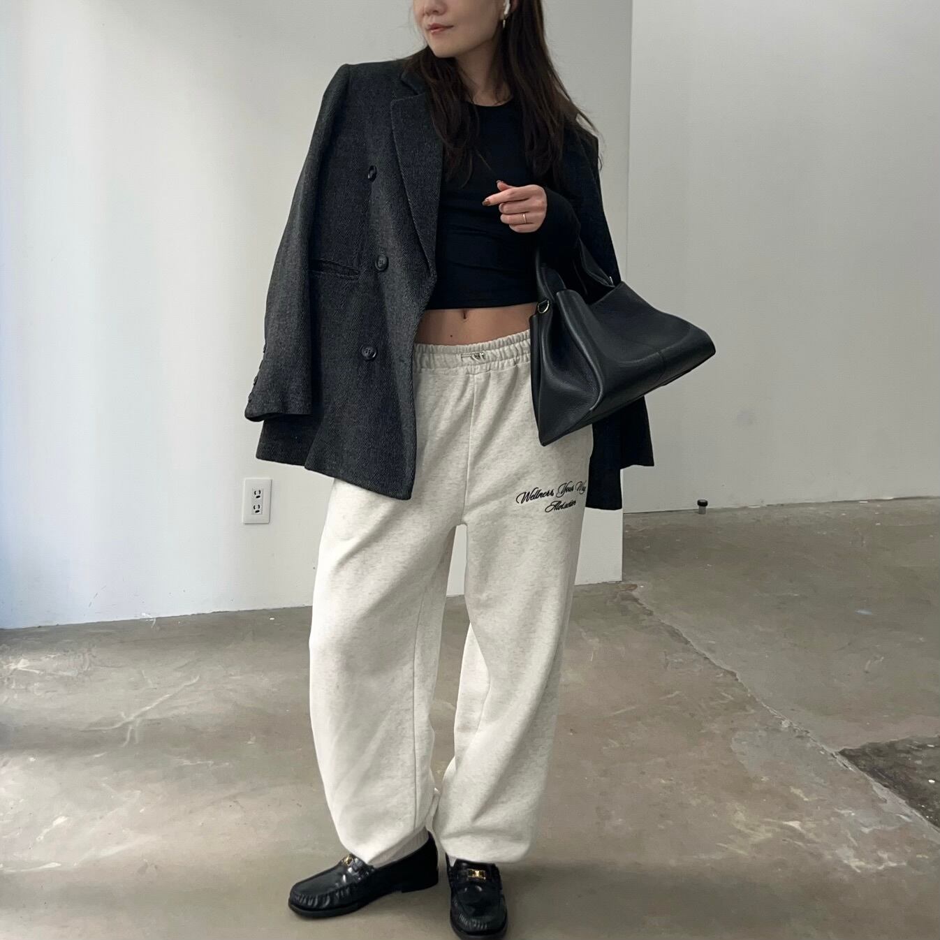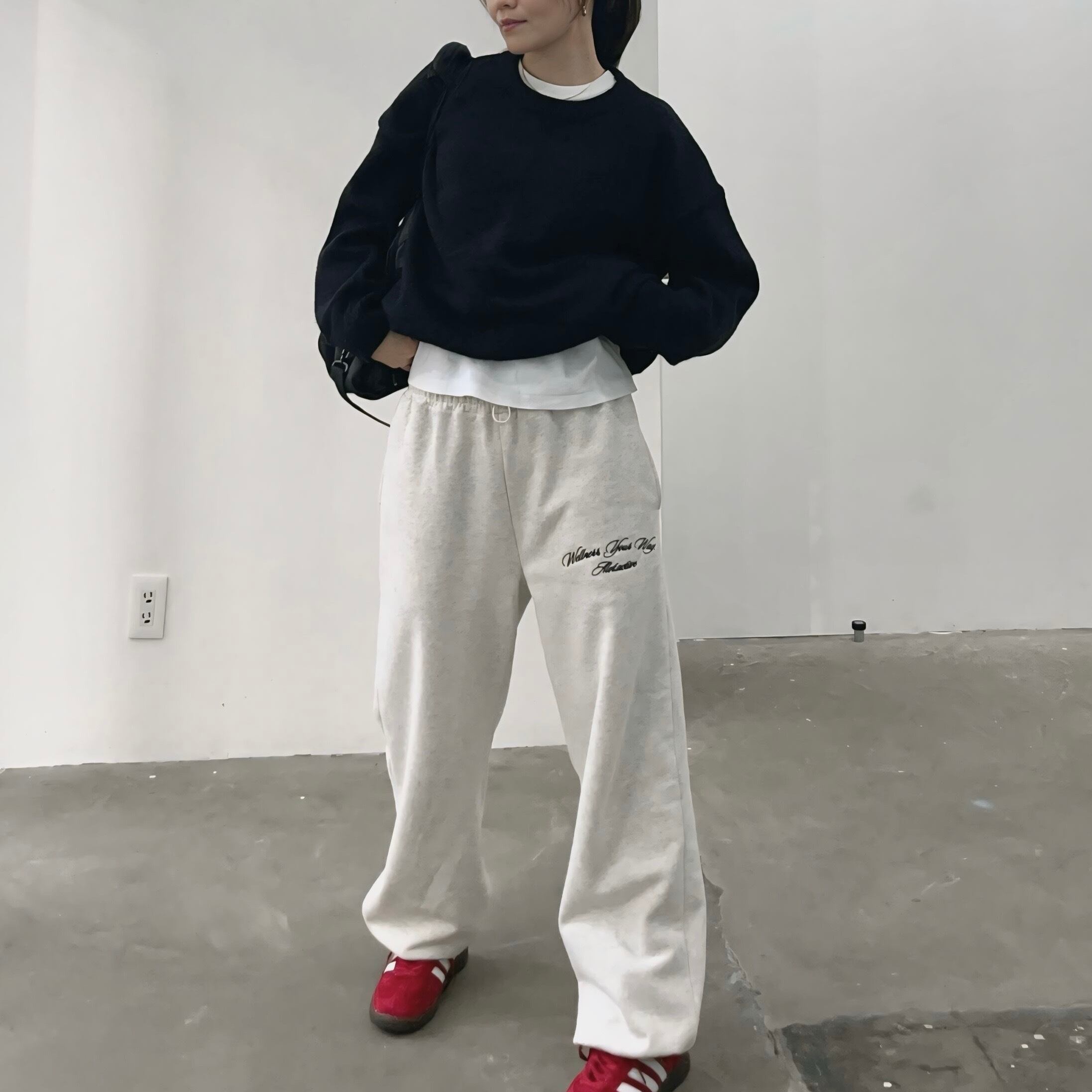 ワークアウト前後やリラックスタイムはもちろん、街中でもおしゃれに着用できるセットアップです。