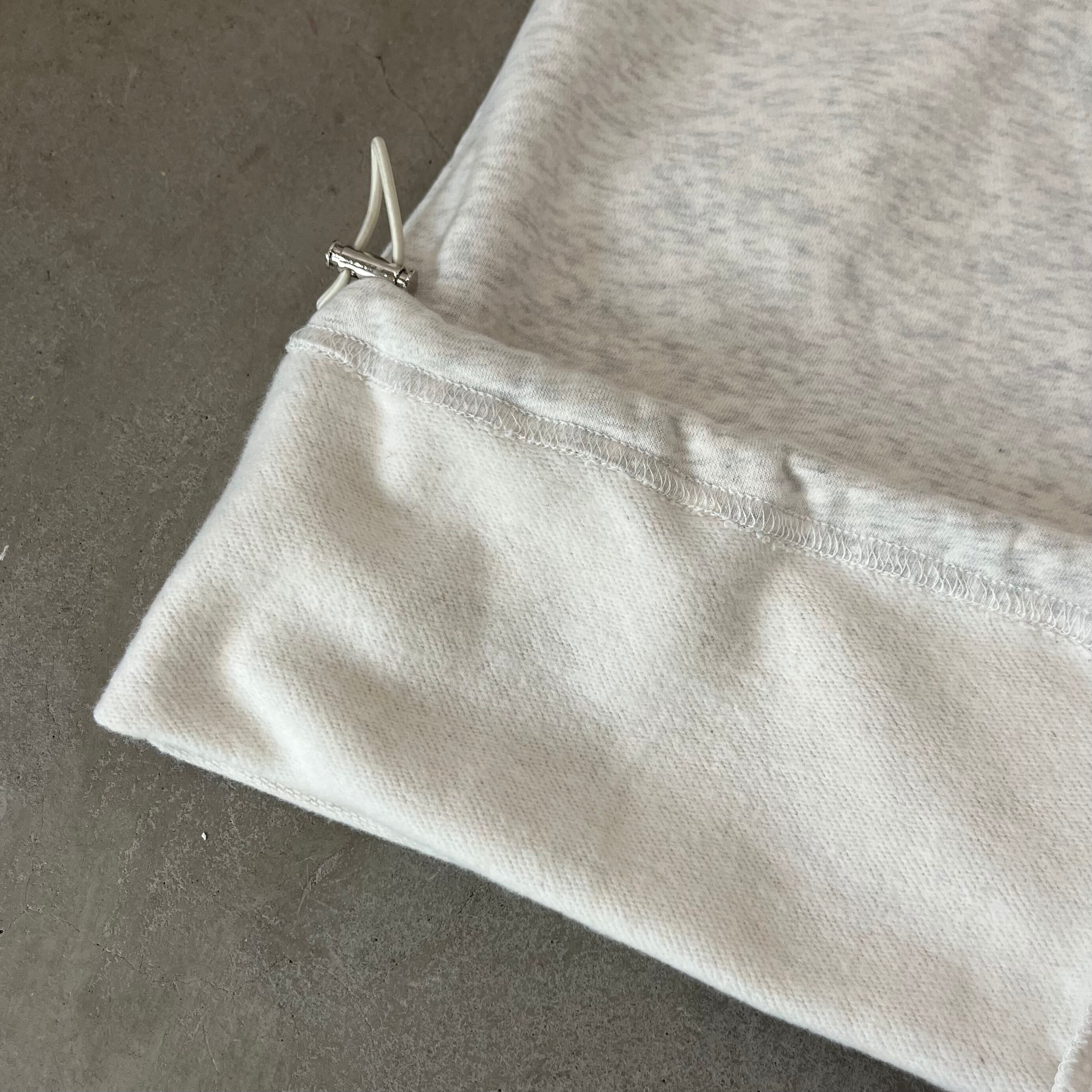 トップスのサイドとボトム裾にはラバーコードを配し、シルエットや丈の長さ調整が可能。