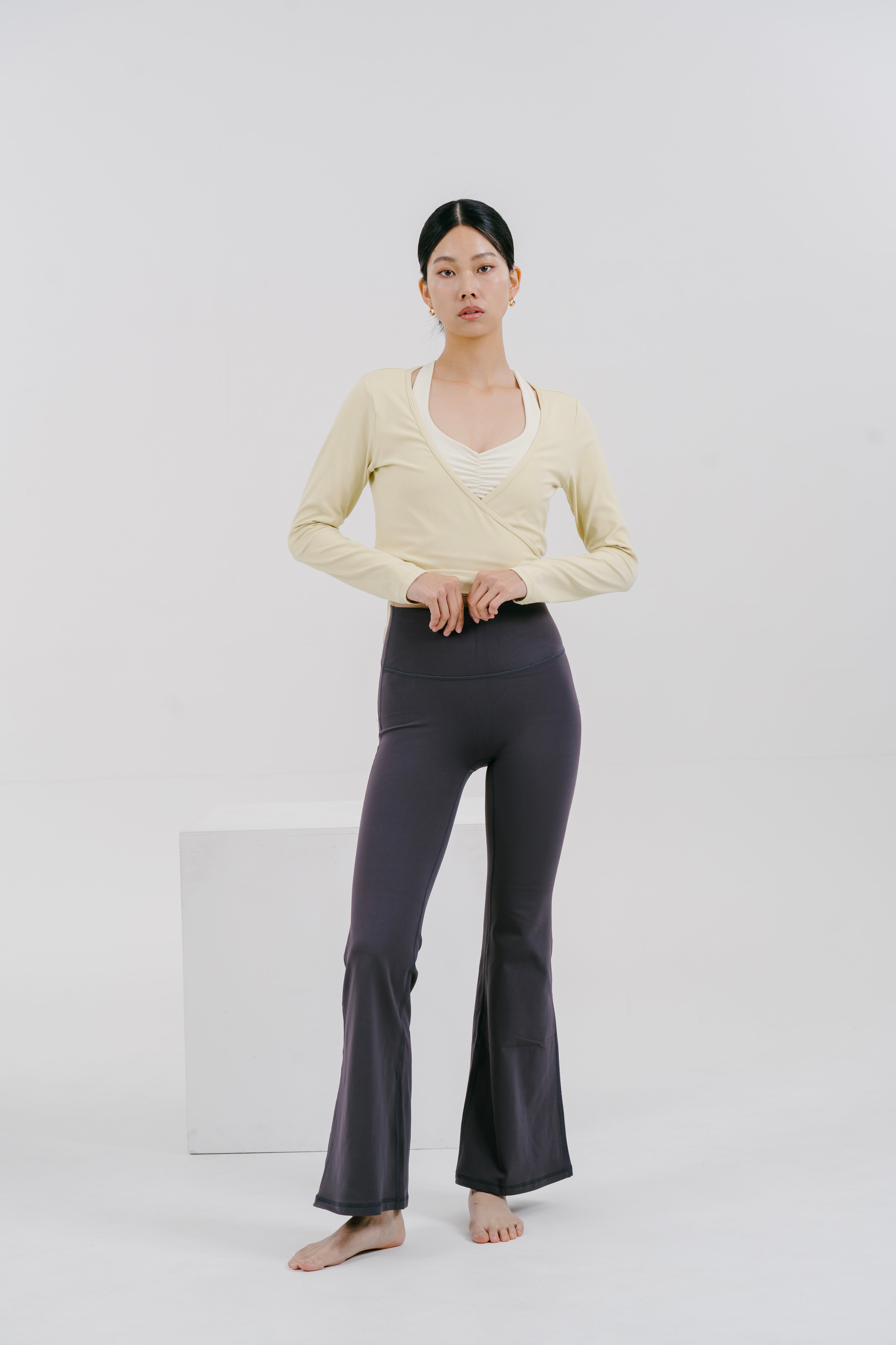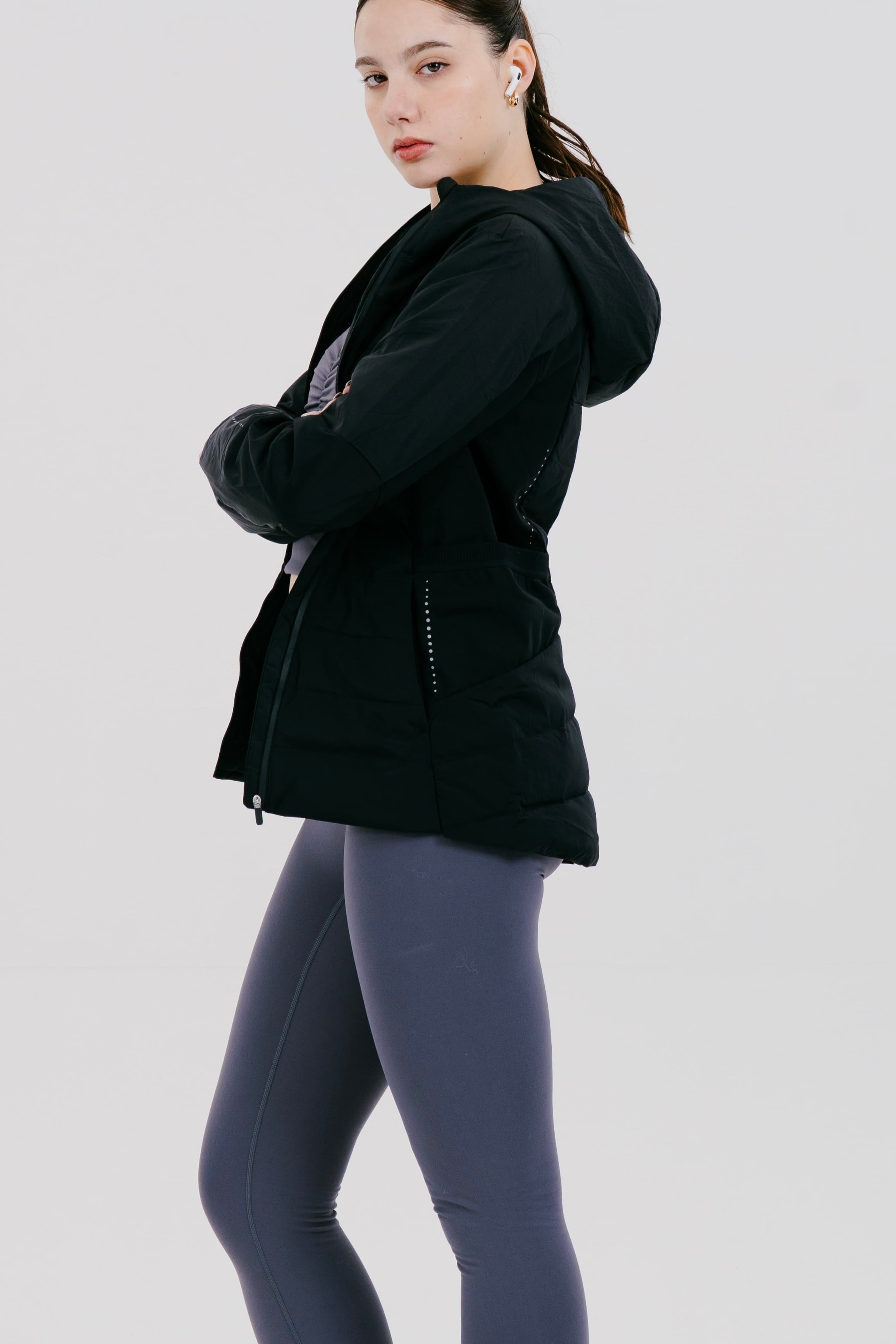 洗練されたシルエットのダウンと、美脚効果抜群の裏起毛フレアレギンスが、まだまだ寒い真冬のワークアウトをサポート。